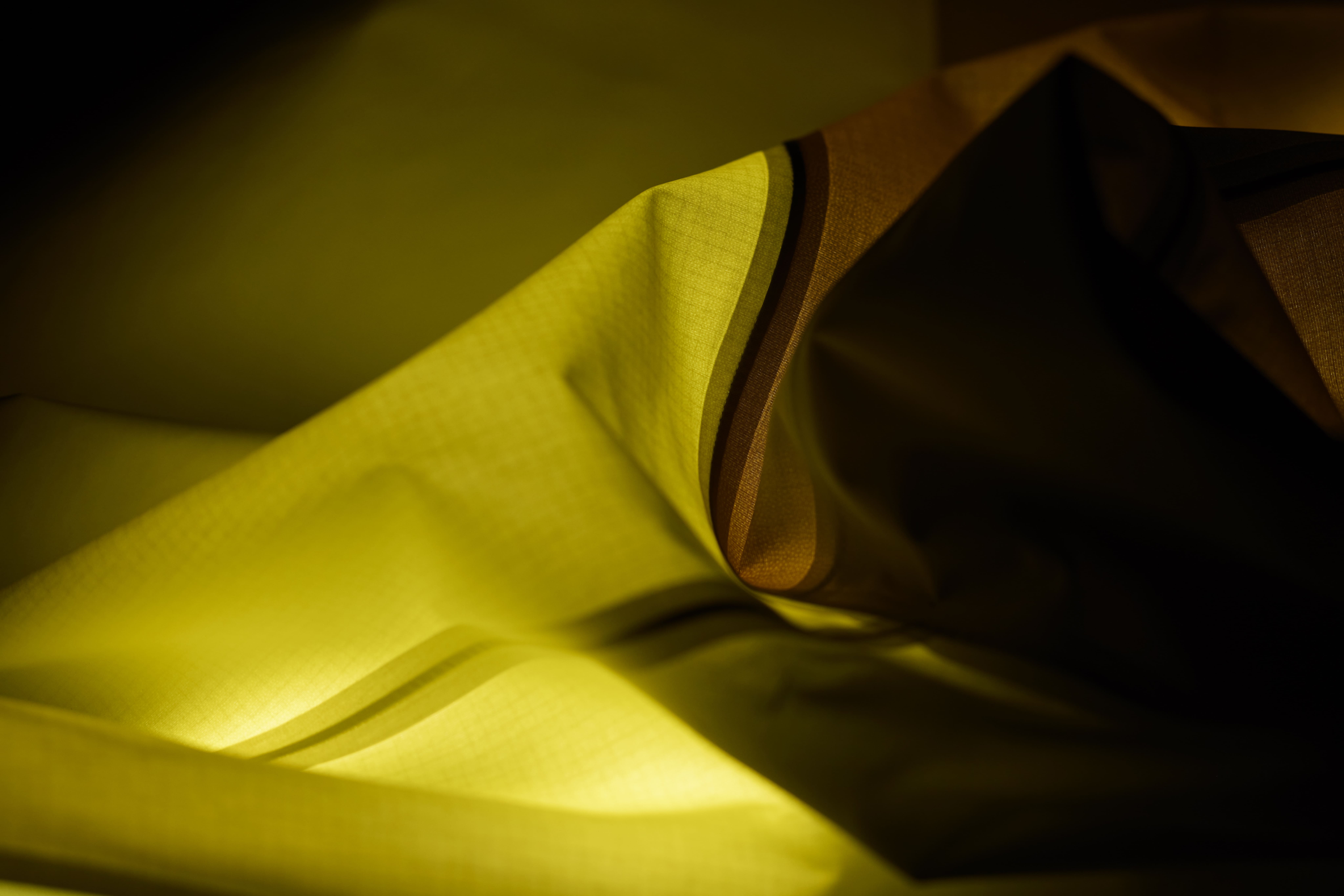 さらに、メンブレンが薄くなったことで表面の素材に厚みをもたせる余裕が生まれた。結果、厚みのある表地を組み合わせた耐久性の高い生地が重さを変えずに作れるようになり、それがプロダクトの強さに直結している。