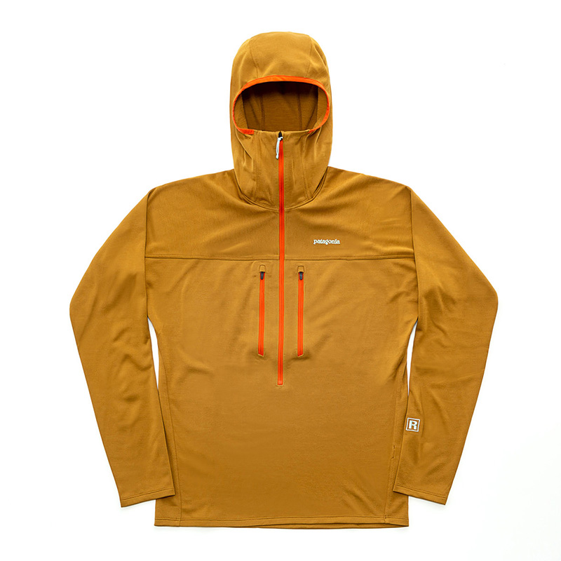 薄手で軽量なプルオーバーは、ハーネスの下で邪魔にならず、長めのフロントファスナーにより着脱しやすい。フリース素材の生地は、肌側と表面を異なる織り方とすることで吸汗発散性と防風性を両立した。フードはバラクラバフィットを採用し、ヘルメットの下に着用することもできる。