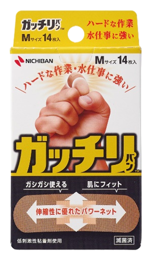外岩やボルダリングジムでの登攀中、指先や手のひらの小さな裂傷などのマイナートラブルは避けられない。通常の絆創膏では汗や摩擦で簡単に剥がれてしまうことも多く、貼り替えの手間がストレスになる。そんなクライマーにとって頼もしい存在となりそうなのが、ハードな作業や水仕事に強い救急絆創膏「ガッチリバン」である。